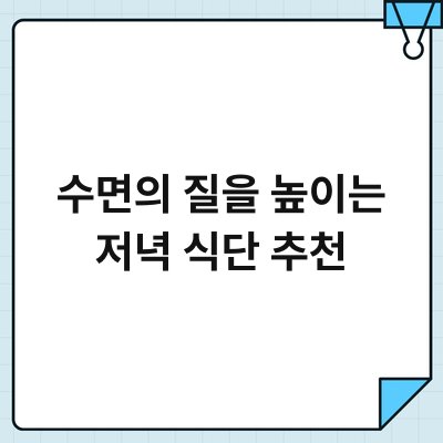 하루의 마무리, 저녁 식사는 단순한 영양 섭취를 넘어 수면의 질에 큰 영향을 미칩니다. 여러분은 저녁에 어떤 음식을 드시나요? 잘못된 식단은 불면증을 유발할 수 있지만, 올바른 선택은 깊고 편안한 잠을 선사할 수 있습니다. 이번 글에서는 수면의 질을 높이는 저녁 식단에 대해 알아보겠습니다. 건강한 수면을 위한 맛있는 저녁 메뉴를 준비해보세요. 수면에 좋은 음식 선택하기 영양소의 중요성 수면의 … Read more